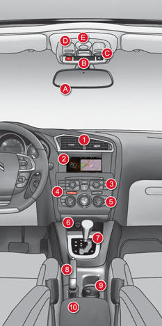 C. Plafonnier / Lecteurs de carte / Éclairage d’ambiance.