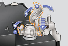 - Appuyez verticalement sur le collier E pour bien le positionner contre la batterie.